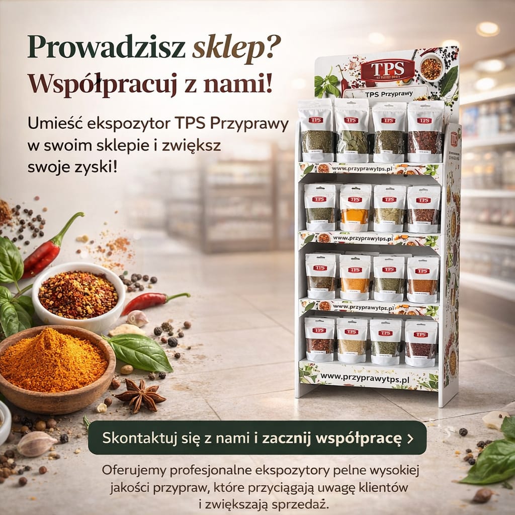 Nasze produkty kupisz w sklepie internetowym TPS – ponad 150 przypraw i mieszanek dostępnych od ręki. Zamówienia realizujemy w 24 godziny, a każda paczka jest ręcznie pakowana.