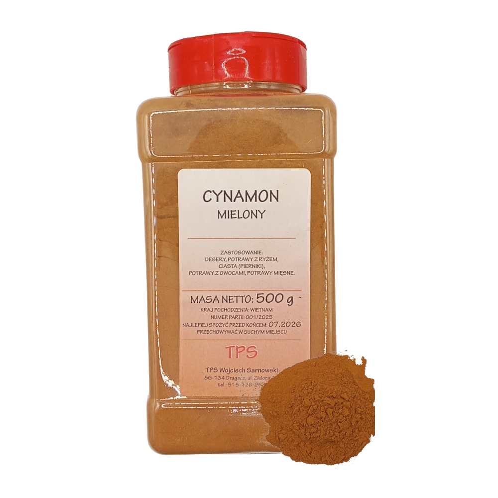 - Zastosowanie: Cynamon mielony używany jest do przyprawiania wypieków, deserów, potraw z ryżem, a nawet potraw wytrawnych, takich jak gulasz czy zupa krem z dyni.