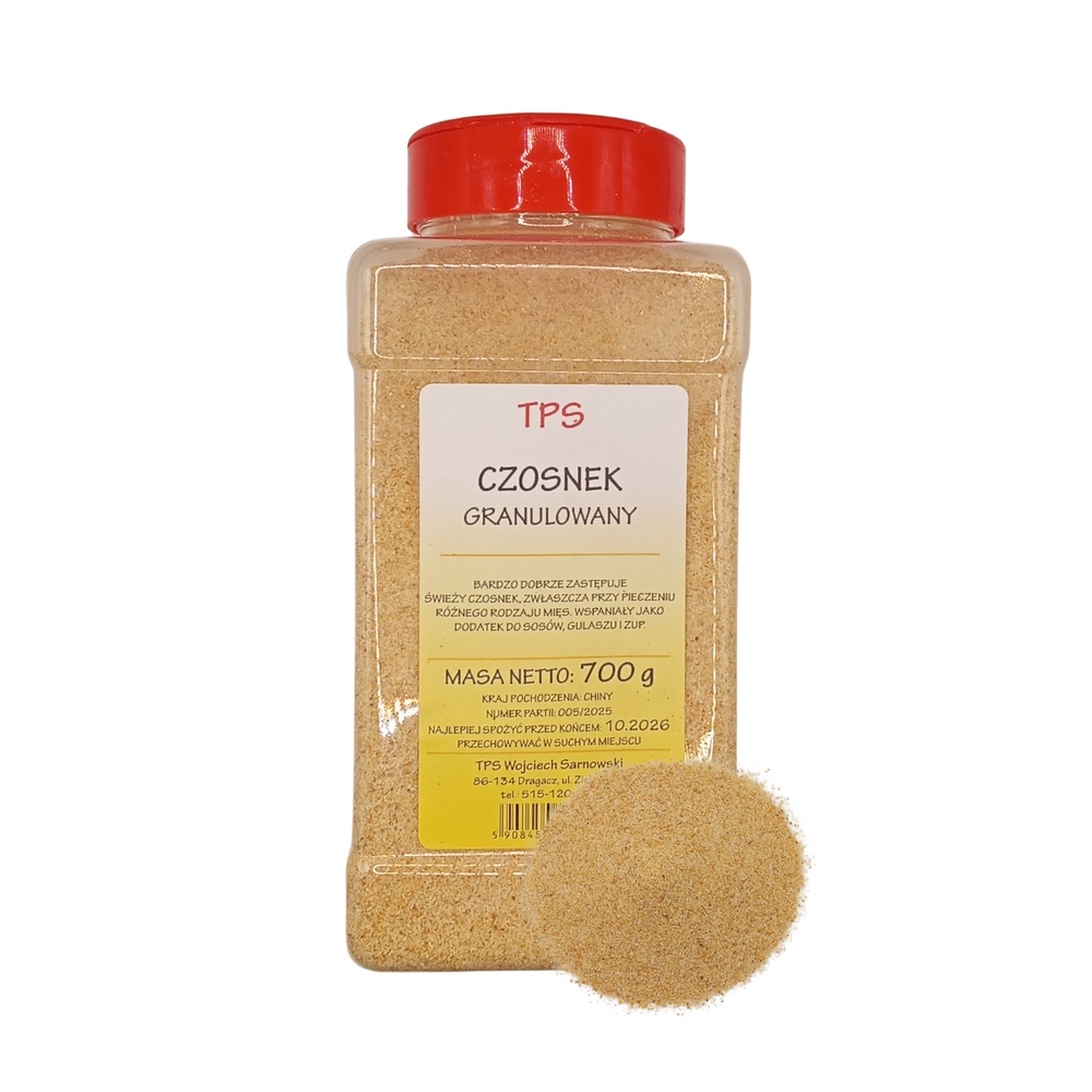 - Czosnek granulowany należy przechowywać w suchym, chłodnym i ciemnym miejscu, w szczelnie zamkniętym opakowaniu, aby zachować jego świeżość i smak.
