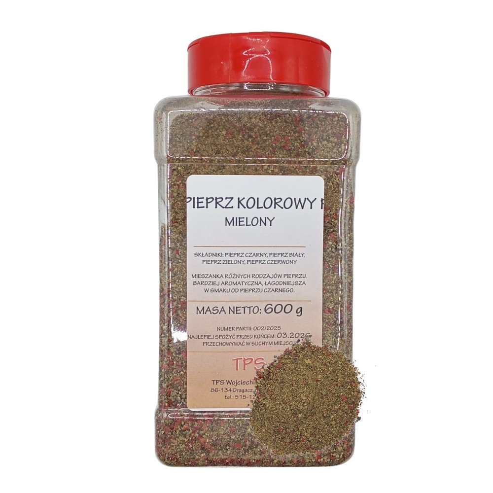 Pieprz kolorowy mielony to przyprawa, która sprawia, że każda potrawa zyskuje wyjątkową głębię aromatu i zbalansowaną, przyjemną pikantność — idealna do codziennego użytku.