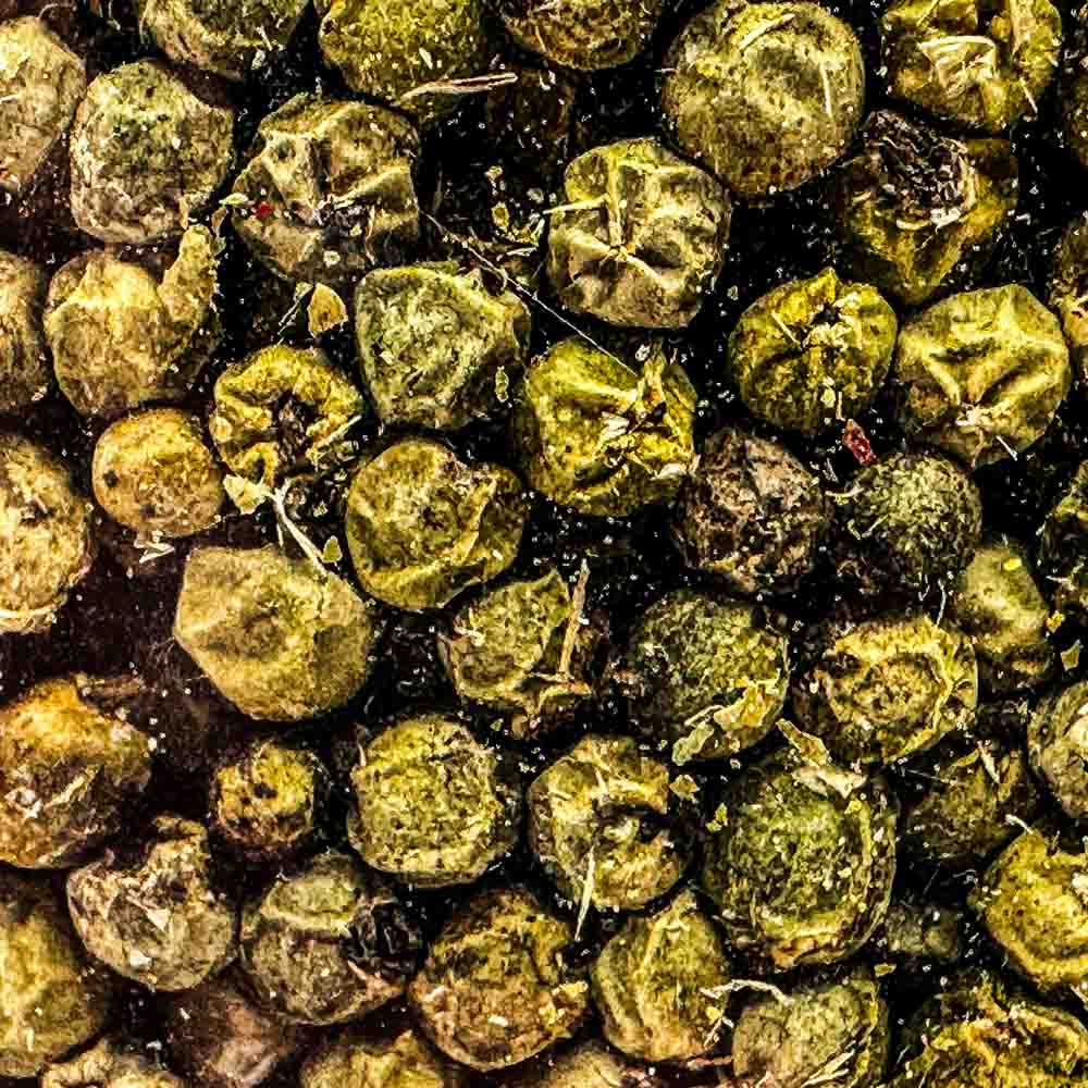 Pieprz zielony to niezwykle ceniona odmiana pieprzu, wyróżniająca się świeżym, lekko pikantnym smakiem i subtelnym, ziołowym aromatem. Pozyskiwany z niedojrzałych owoców pieprzu czarnego, zachowuje swoją naturalną zieloną barwę dzięki procesowi suszenia lub liofilizacji. Dzięki temu ma delikatniejszy charakter w porównaniu z pieprzem czarnym, jednocześnie oferując wyjątkową głębię smaku.